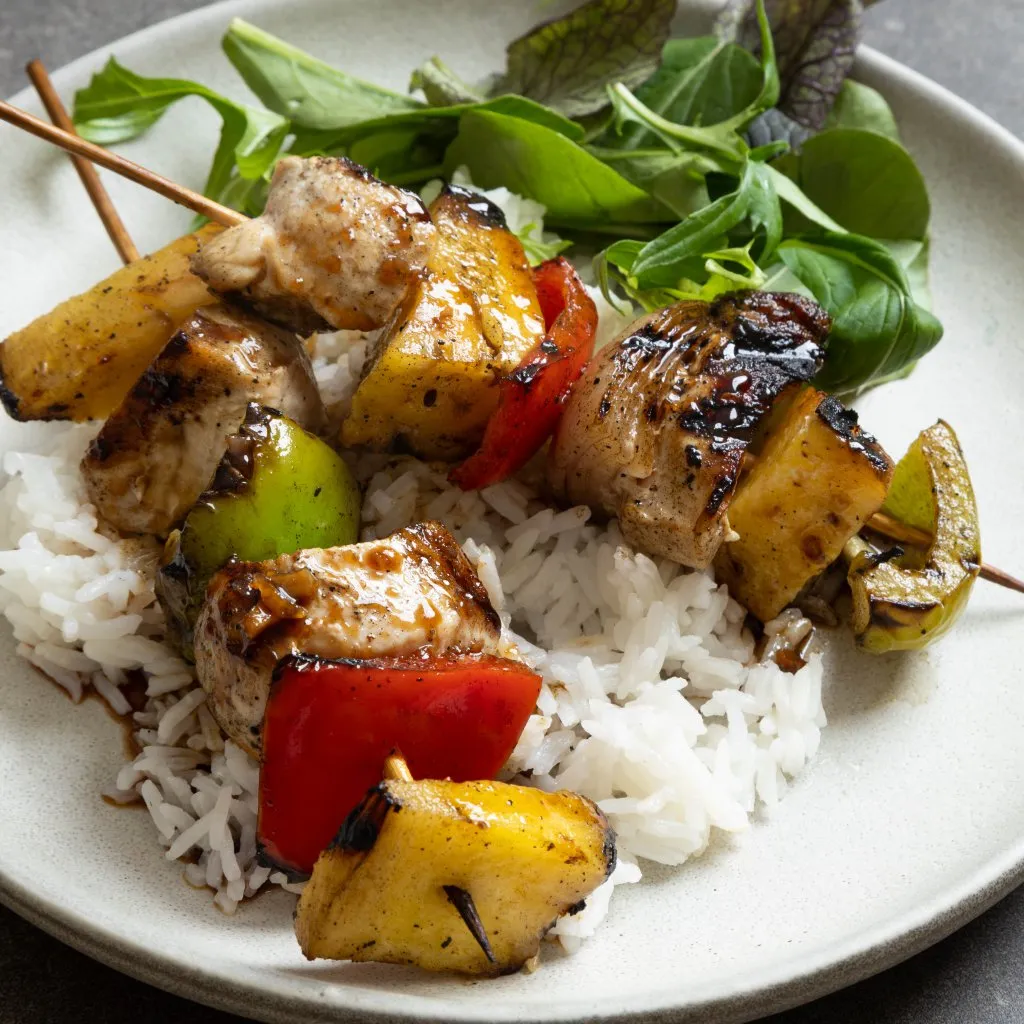 In the last few minutes of cooking, brush the kebabs generously with the Sticky Asian Sauce, allowing it to caramelise slightly.