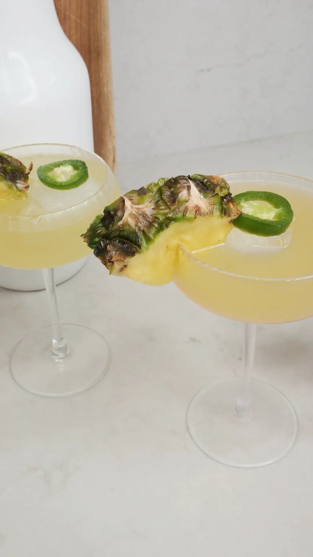 Top with pineapple chunks and a jalapeño slice (we recommend using the jalapeños from the simple syrup).
