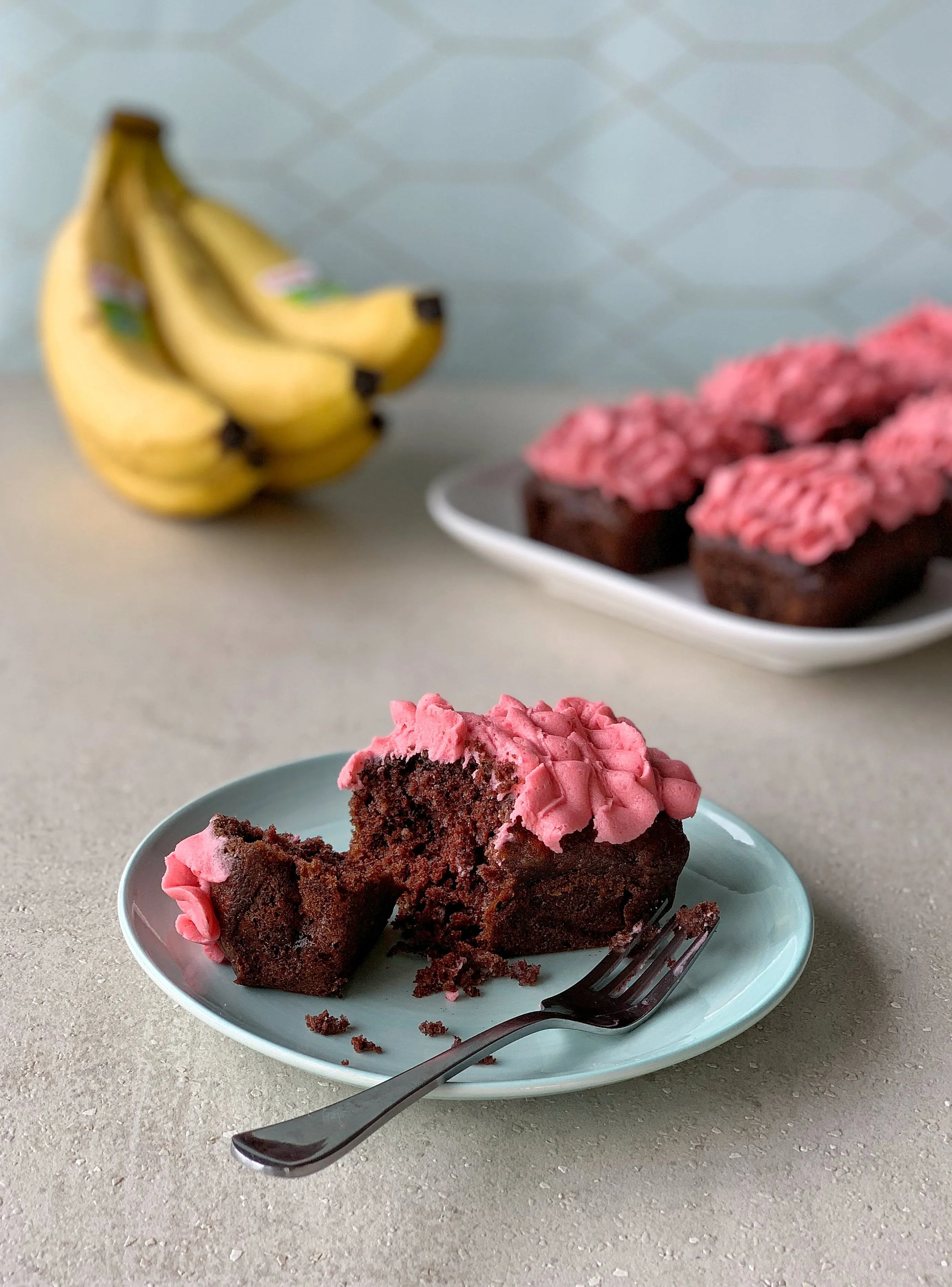 8. Spread or pipe raspberry icing onto each mini loaf once they have cooled. Sprinkle over raspberries if using.
