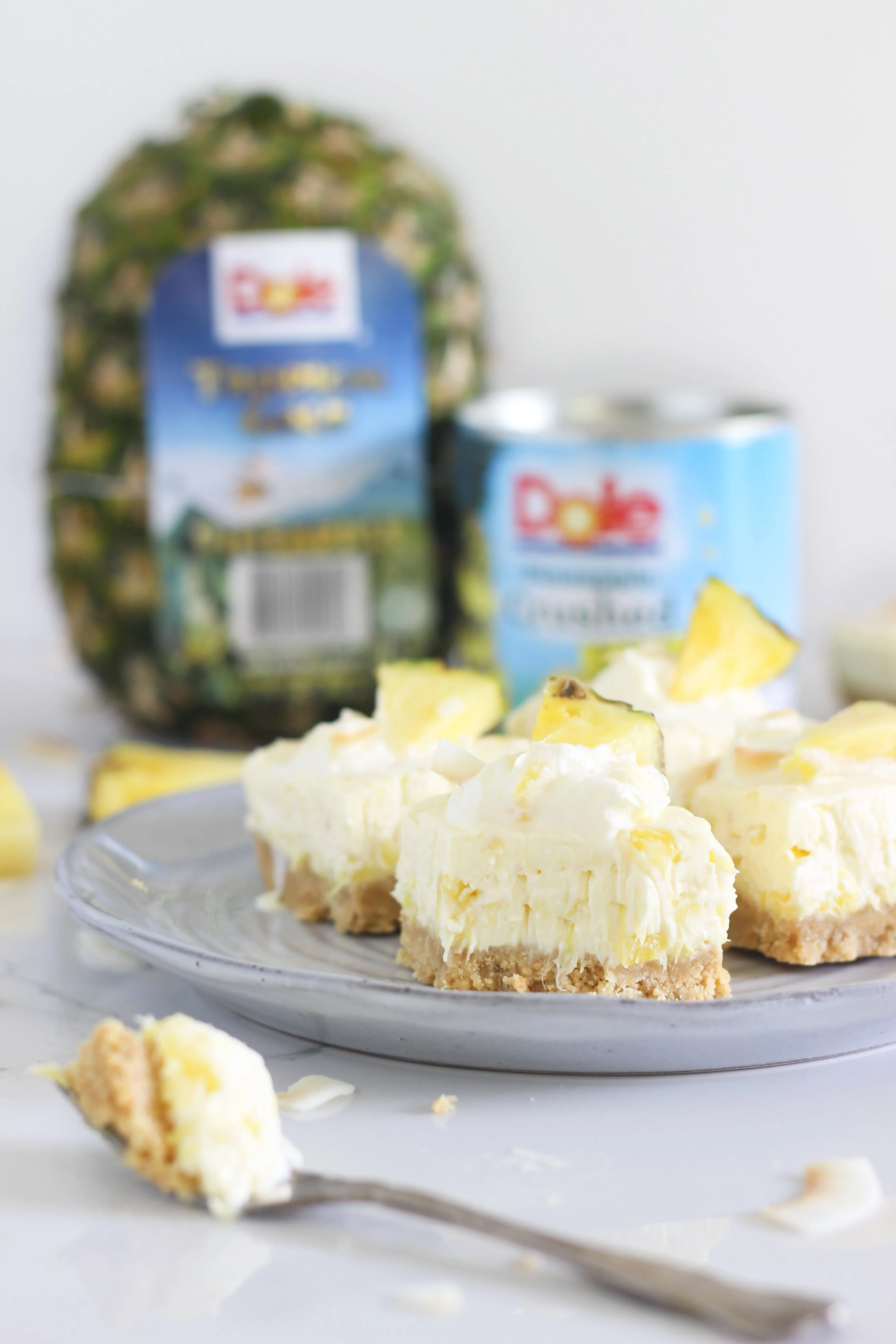5. Decorate each individual bar with cream, a piece of fresh pineapple and a sprinkle of toasted coconut flakes.