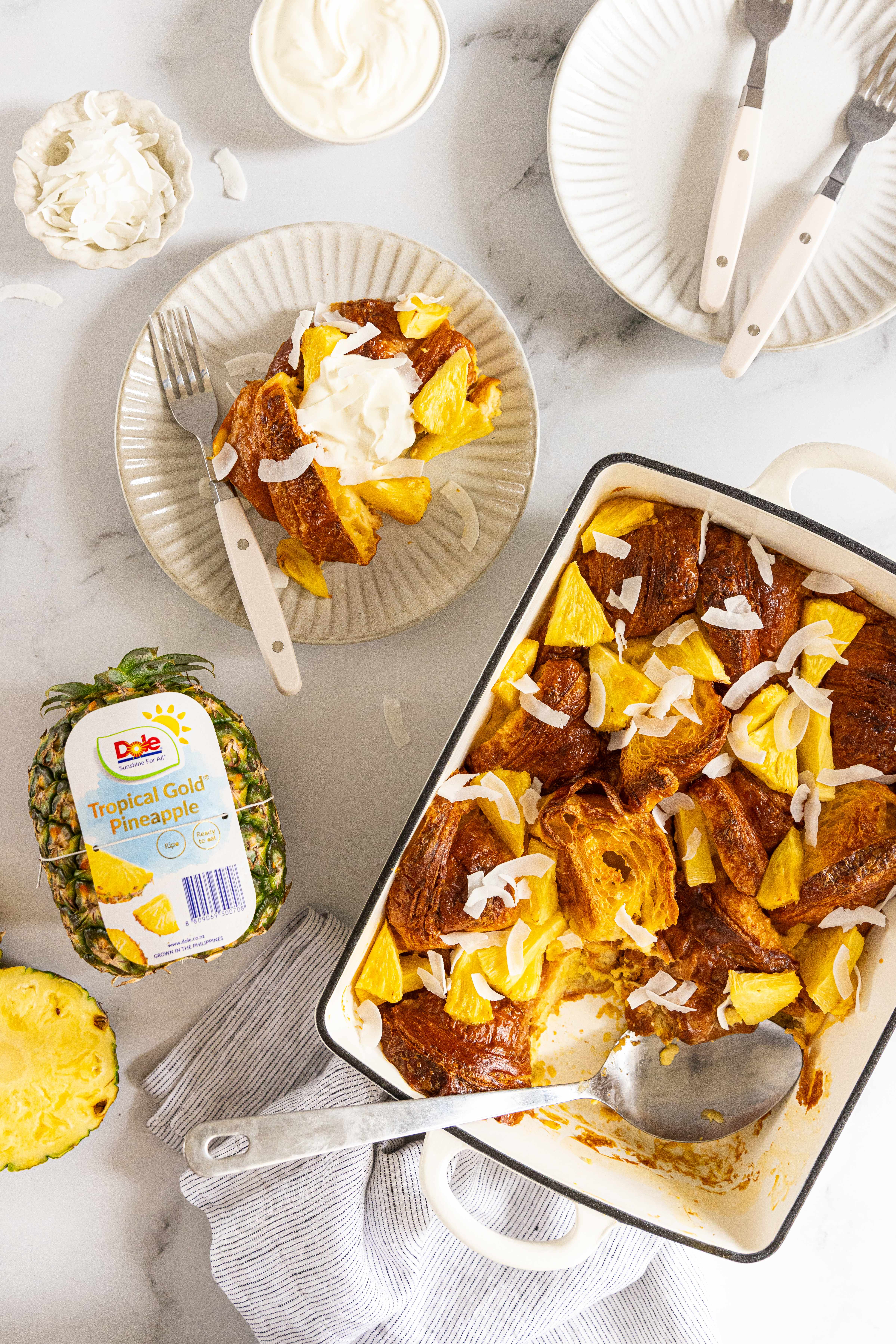 We’re taking classic french toast and giving it a tropical makeover that will transport you straight to a sun-drenched beach with just one bite. Golden croissants soaked in a creamy custard made with coconut milk, layered with juicy pieces of fresh pineapple. Whether you're looking to impress guests for brunch or simply want to treat yourself to a special breakfast, this croissant french toast bake is an easy option and can even be prepared the night before.
