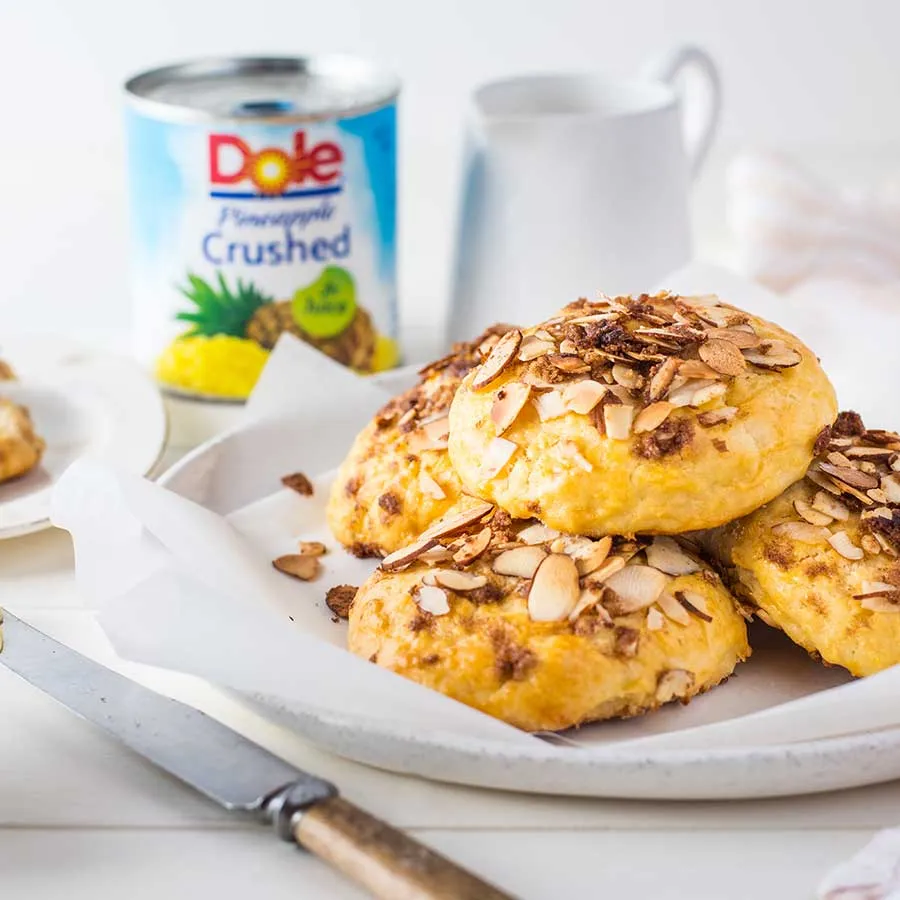 Stir in drained pineapple and vanilla, adding reserved juice as needed until dry ingredients are just moistened and forms ball. Be sure not to overmix.