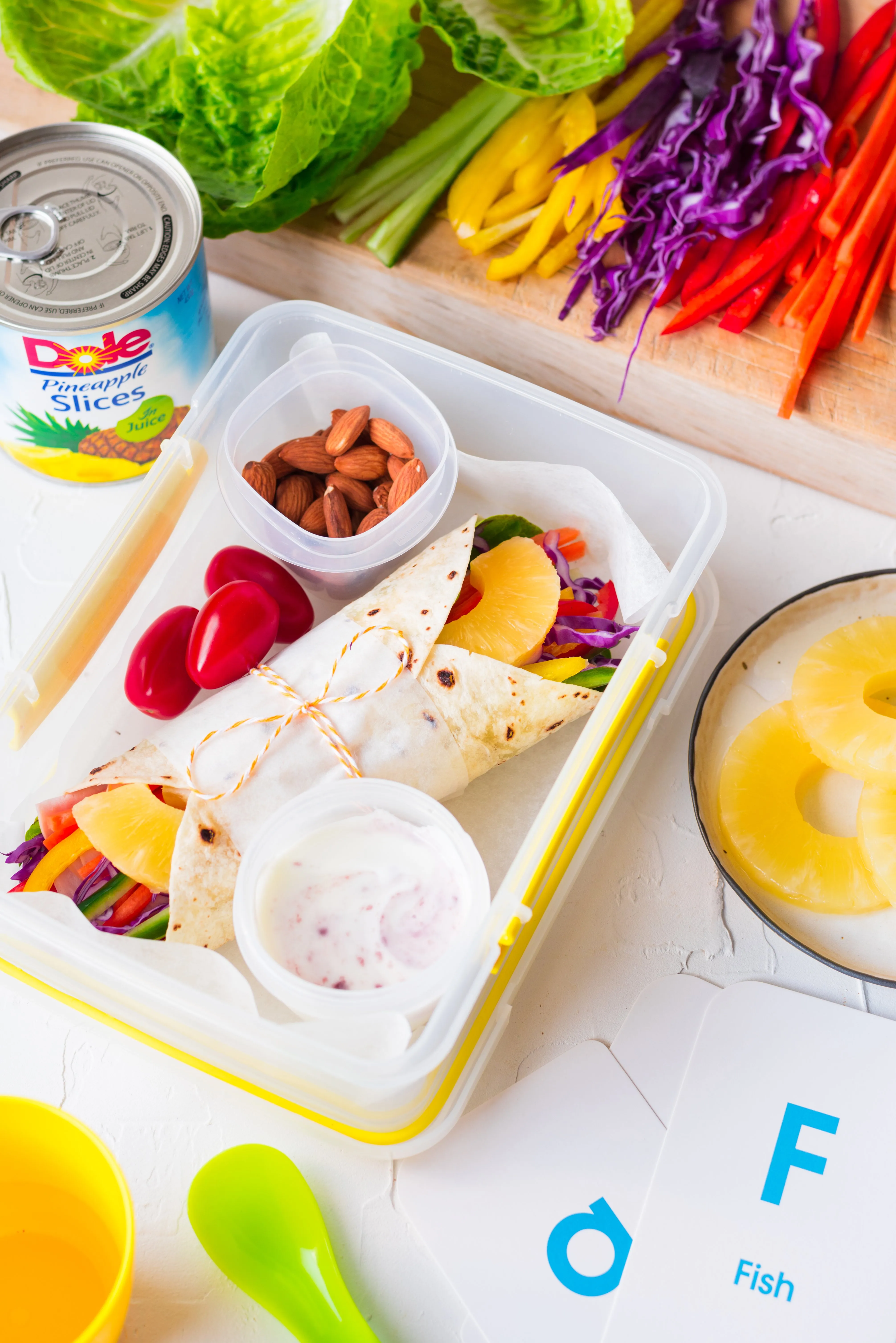 1. Spread 2 teaspoons of mayonnaise onto the middle of each wrap. Top with remaining ingredients and tightly wrap. Secure with a strip of baking paper and string.
