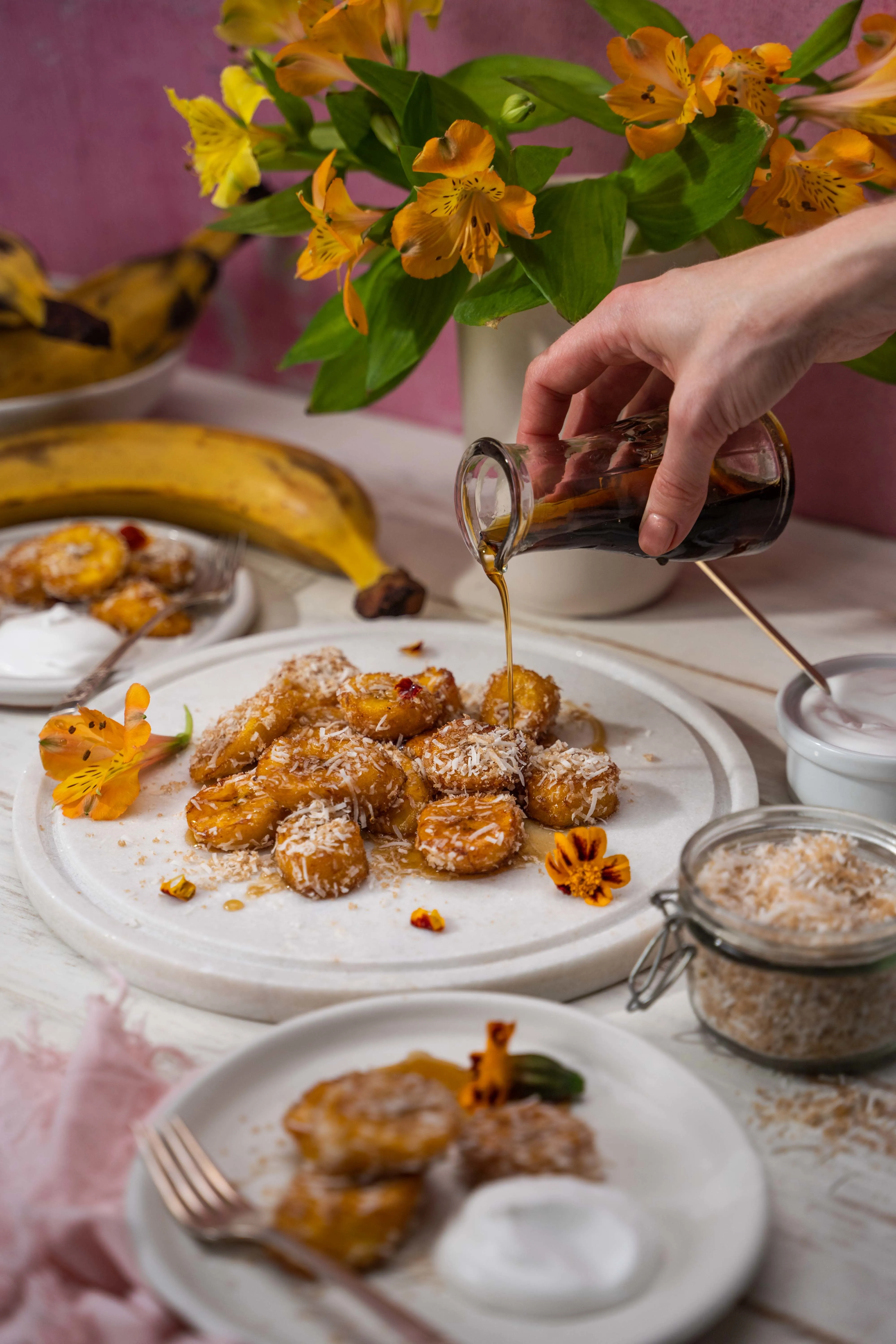 Jax Hamilton's Tip : Toasted coconut : Sprinkle 1 cup of shredded coconut into a non-stick frying pan, ensuring you have an even layer. Over a medium heat, toast and toss until the coconut is fragrant and brown. Remove from the heat. Sprinkle over your crispy plate of fried plantain. This is a wonderful way to amp up and bring gorgeous texture to this dish.